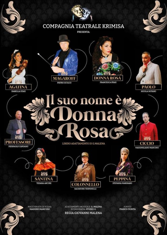 VENERDI’ 29 Luglio 2022 la Compagnia teatrale KRIMISA presenta lo spettacolo “Il suo nome è Donna Rosa”.